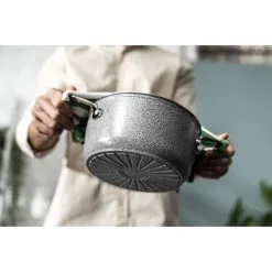 Questa casseruola 2 maniglie diametro cm.16 con coperchio della linea Salina di BALLARINI, è la scelta perfetta per preparare piccole porzioni di pasta, riso o zuppe, ideale per purè, sughi e tutto quanto suggerisce la tua fantasia! Il RIVESTIMENTO ANTIADERENTE GRANITIUM TI-X a 7 strati rinforzato con Particelle minerali a base dura al TITANIO garantisce una Eccellente Resistenza al Graffio e alla Abrasione ed è testato per PFOA, Nickel e Metalli pesanti. Le eleganti maniglie in acciaio Inox sono state disegnate dallo Studio Matteo Thun & Antonio Rodriguez, e sono ideali per un utilizzo anche in forno. Il Fondo induzione RADIANT brevettato per il massimo rendimento termico offre una Eccellente Stabilità e rende questo articolo adatto a tutte le fonti di calore. Il bordo è rinforzato per una maggiore resistenza a colpi e cadute. Grazie a questo articolo potrai cucinare in modo SALUTARE con pochi oli o grassi. Il Rivestimento esterno è ad alta Resistenza termica, per una lunga durata estetica del prodotto. Anche la pulizia è semplicissima: può andare in lavastoviglie, ma grazie al suo rivestimento antiaderente può anche essere lavata facilmente a mano. Prova a cucinare golosi dessert come la panna cotta o il creme caramel! Seguendo le istruzioni uso allegate all’articolo è garantita una Eccellente durata nel tempo. Con la casseruola della linea SALINA di BALLARINI, cucinare diventa facile e divertente, e con il coperchio di vetro puoi seguire la preparazione senza scoperchiare! Prodotto Made in Italy con 10 anni di garanzia.