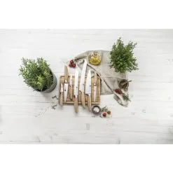 Il coltello da carne ha una lama di 16 cm ed è prodotto con una qualità particolarmente elevata. È realizzato in acciaio inossidabile tedesco e l’impugnatura in legno è realizzata in legno di pakka lucido. L’incredibile affilatura e la capacità di conservazione della lama sottile vi consentirà di tagliare la carne mantenendola particolarmente succosa. Grazie all’impugnatura ergonomica, il coltello garantisce una presa perfetta, permettendovi di eseguire il vostro lavoro come un professionista. Il rinforzo offre un’eccellente protezione per le dita e garantisce il corretto equilibrio durante il taglio.