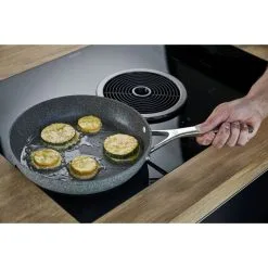 Immagina quante deliziose ricette potrai preparare in questa Padella diametro cm.26 linea Salina di Ballarini! Ideale per tutte le preparazioni, provala per cucinare alla perfezione carni ad alto spessore o per cotture in umido, ti stupirai di quanto è performante! Il RIVESTIMENTO ANTIADERENTE GRANITIUM TI-X a 7 strati rinforzato con particelle minerali a base dura al TITANIO garantisce una Eccellente resistenza al graffio e alla abrasione ed è testato per PFOA, Nickel e Metalli pesanti. L’elegante manico V-SHAPE in acciaio Inox è disegnato dallo Studio Matteo Thun & Antonio Rodriguez, ed è progettato per un surriscaldamento ritardato, ideale per un utilizzo anche in forno. Il Fondo induzione RADIANT brevettato per il massimo rendimento termico offre una Eccellente Stabilità e rende questo articolo adatto a tutte le fonti di calore. Il bordo è rinforzato per una maggiore resistenza a colpi e cadute. Grazie a questo articolo potrai cucinare in modo SALUTARE con pochi oli o grassi. Il Rivestimento esterno è ad alta Resistenza termica, per una lunga durata estetica del prodotto. Anche la pulizia è semplicissima: la padella può andare in lavastoviglie, ma grazie al suo rivestimento antiaderente può anche essere lavata facilmente a mano. Seguendo le istruzioni uso allegate all’articolo è garantita una Eccellente durata nel tempo. Con la padella della linea Salina di BALLARINI, cucinare diventa un vero piacere! Prodotto Made in Italy con 10 anni di garanzia.