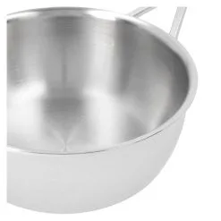 Una padella conica per sauté è perfetta per dare il tocco finale alle vostre creazioni culinarie. Un piccolo tegame usato principalmente per fare salse o rosolare le verdure è indispensabile in qualsiasi cucina ben attrezzata. Oltre che per preparare, miscelare e ridurre le salse, può essere usato anche per ricoprire le verdure con il burro e caramellare la frutta. La forma caratteristica della padella conica per sauté da 18 cm la rende un vero e proprio utensile da cucina polivalente: il profilo arrotondato dal bordo della pentola alla base, ad esempio, fa sì che cucchiai o fruste siano in grado di raggiungere ogni angolo all’interno della pentola. La padella per sauté Demeyere ha una capacità complessiva di 1,5 l ed è quindi ideale per porzioni di cibo di piccole e medie dimensioni. Il design è un fattore importante per molti cuochi: per la realizzazione della serie di pentole Industry, il designer belga Stefan Schöning ha tratto ispirazione dallo stile industriale delle pentole americane. La padella è realizzata in un materiale a cinque strati di alluminio e acciaio inossidabile, che è facile da pulire e garantisce una rapida distribuzione del calore dal piano cottura. Scoprite e create una varietà di nuovi piatti per i vostri amici e la vostra famiglia con la padella conica per sauté.
