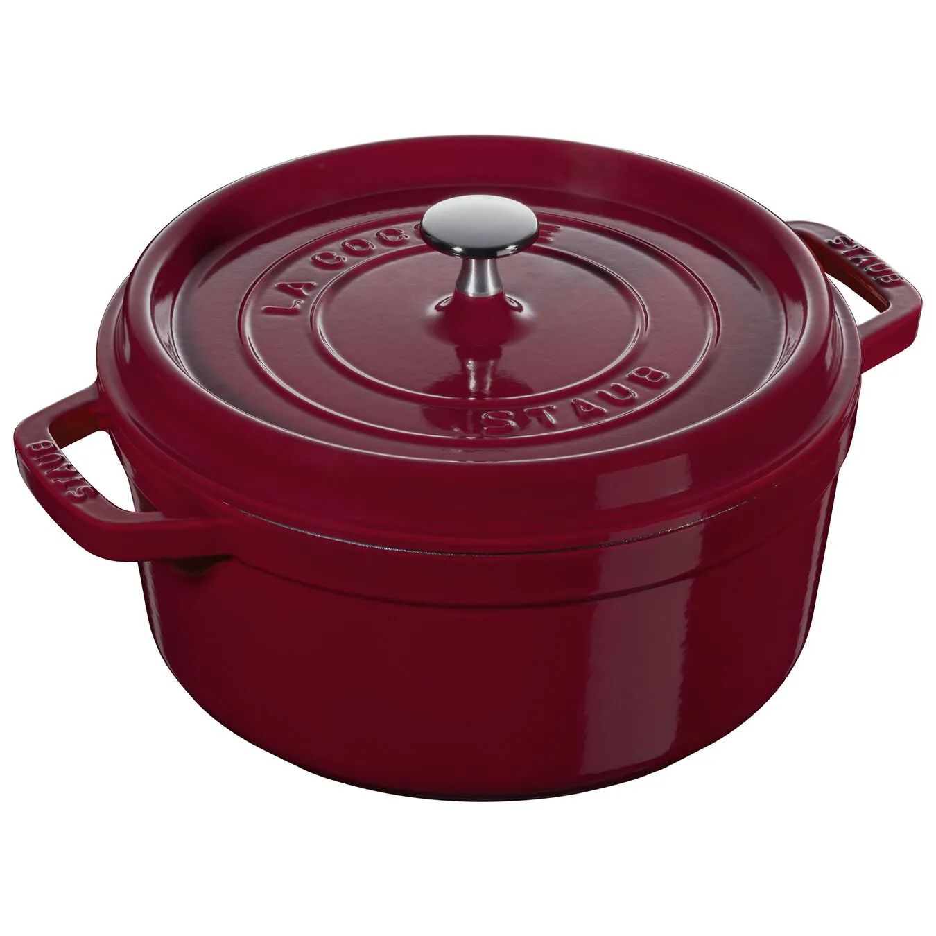 La cocotte di STAUB in elegante bordeaux combina l’artigianato tradizionale con la funzionalità moderna per un piacere unico. Peperoni ripieni, involtini di cavolo, ratatouille mediterranea, dessert, pane fresco e molto altro: in questa pratica pentola in ghisa è possibile preparare un’ampia varietà di pietanze. Grazie a questo speciale materiale che richiede solo pochi grassi per la cottura e alla struttura unica della casseruola, i cibi risultano poveri di calorie ma ricchi di sostanze nutritive e sprigionano aromi invitanti. Lo strato di smalto interno nero opaco intensifica il gusto delle pietanze, mentre la ghisa garantisce una distribuzione ottimale del calore. Sia i cuochi professionisti che quelli dilettanti troveranno un aiutante durevole nella pentola in ghisa.