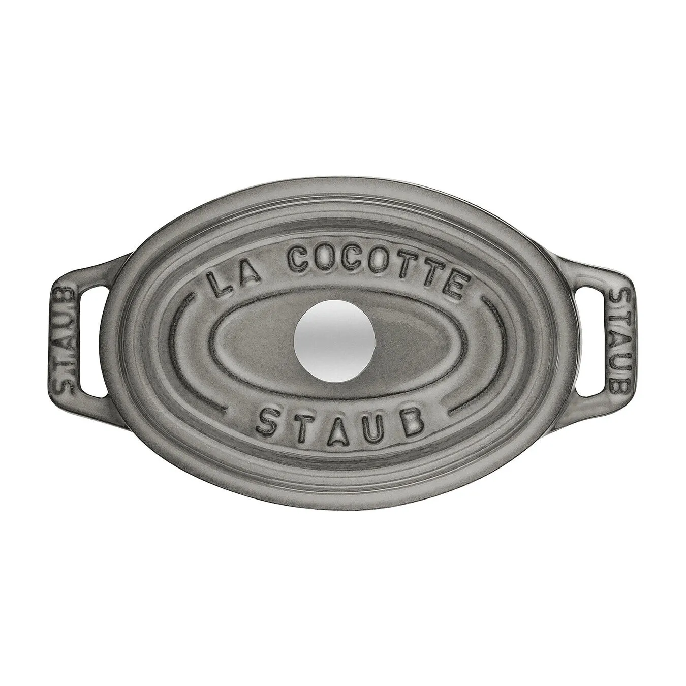 Con questa mini cocotte della serie La Cocotte potrete preparare gustosi stufati in un batter d’occhio, che siate un principiante della cucina o un professionista. Le cocotte Staub sono fatte di ghisa, che accumula bene il calore per poi rilasciarlo lentamente. Questo effetto di stufatura è esaltato dalla smaltatura nera opaca all’interno della cocotte, che intensifica ulteriormente il gusto del cibo stesso. Questo effetto risulta ancora più pronunciato quanto più spesso si usa la cocotte. Questa teglia di Staub color grigio grafite convince non solo per i valori interni: il colore si abbina praticamente a ogni mise en place, con il risultato che le cocotte stanno benissimo anche sul tavolo della sala da pranzo. Con misure di 11 cm per 10 cm e una profondità di 4,8 cm, questa mini cocotte è perfetta per la preparazione di piatti più piccoli: i contorni stufati possono essere preparati in pochi istanti in questa mini teglia Staub. Le cocotte possono essere utilizzate su tutti i tipi di fonti di calore, compresi i piani cottura a induzione, e il loro materiale in ghisa è veloce e facile da pulire. La ghisa è anche estremamente resistente, in modo che possiate godervi la vostra cocotte per molti anni a venire. Emulate i migliori chef, con questa cocotte di Staub e servite alla vostra famiglia stufati deliziosi e gustosi.