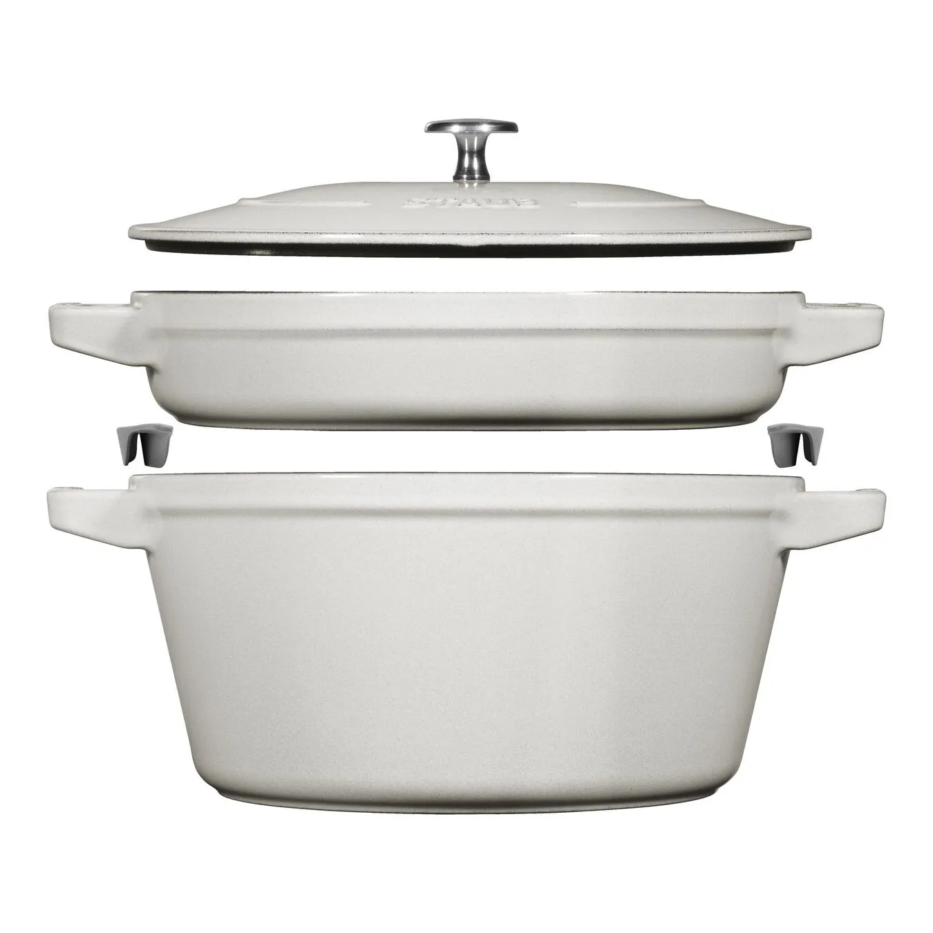 La cucina francese è stata a lungo il simbolo dell’eccellenza in cucina, proprio come la moda francese è sinonimo di eleganza senza tempo. Con i nostri prodotti in ghisa smaltata, miriamo a combinare le due cose: proprietà di cottura eccellenti e aspetto elegante. Il color tartufo bianco, omaggio all’ingrediente raro che Brillat-Savarin definiva “il diamante della cucina”, ne sottolinea la qualità senza pari.