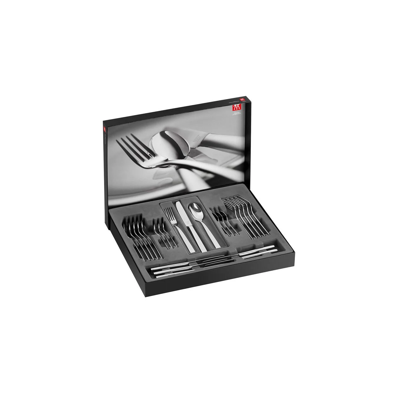 - 6x coltelli, 6x forchette, 6x cucchiai, 6x cucchiaini da caffè, 6x forchette da dessert